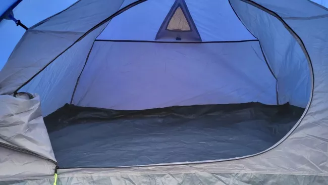 The bedroom fits a standard double airbed with room to spare (215 x 140cm), so you’re not sleeping shoulder-to-shoulder like sardines. There are storage pockets on both sides for your phone and head torch, plus a lantern hook overhead. The porch means you don’t need to keep everything in one room.